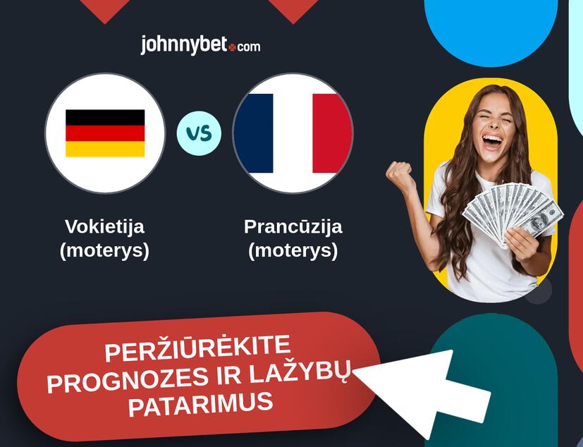 Kokį rezultatą Vokietija (moterys) vs Prancūzija (moterys) prognozuoja dirbtinis intelektas? DI apskaičiavo, kad tikėtiniausias rezultatas – statymas už Over rinkoje Over/Under 2.5, su koeficientu 1.77 ir statoma suma 8, pateikta Vane Mileski.